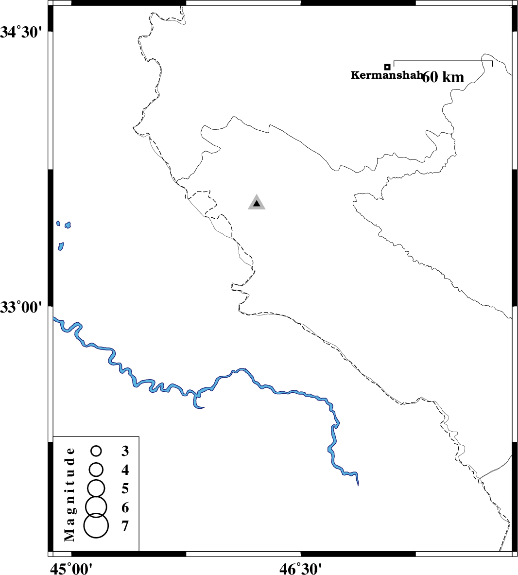 | 2008/01/30 | 10:57:47.3 | 14:27:47.3 | 33.14 | 46.38 | 14 | ML:3.2 | 19 km East of Mehran, Ilam Province |