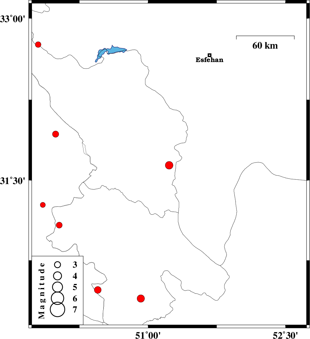 | 2008/01/22 | 20:39:27.2 | 00:09:27.2 | 32.76 | 49.8 | 17 | ML:2.8 | 35 km South-West of Fereydunshahr, Esfahan Province | ||