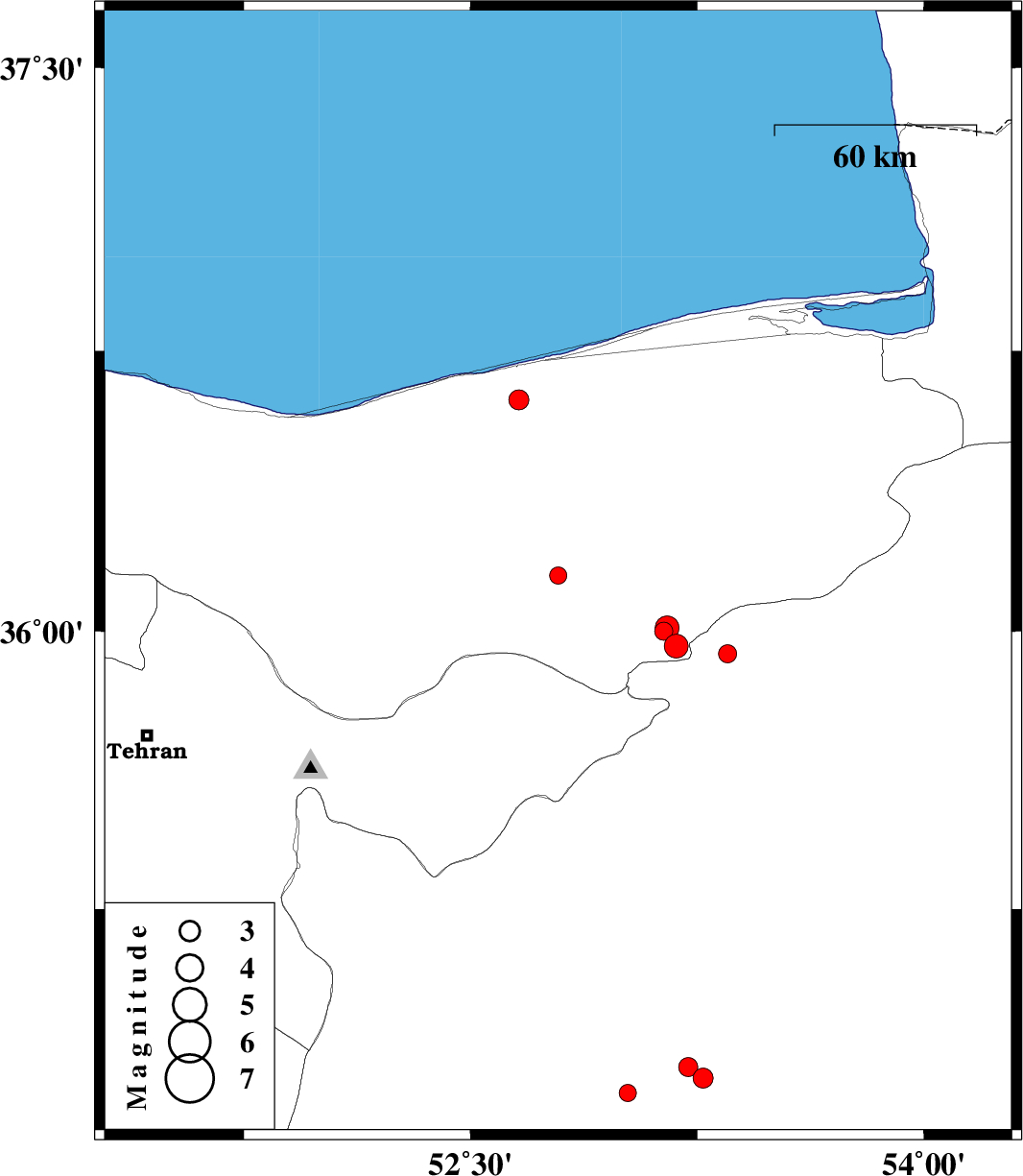 | 2008/02/03 | 13:16:19.7 | 16:46:19.7 | 36.62 | 52.66 | 15 | ML:2.9 | 8 km Babolsar, Mazandaran Province | ||