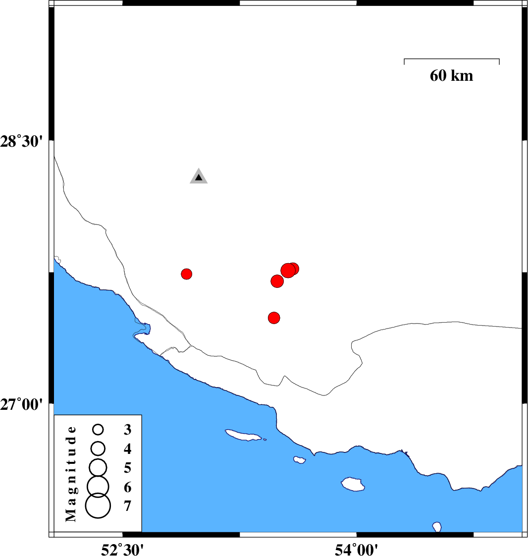 2008/02/04 18:12:41.4 21:42:41.4 27.7753.5940 ML:3.5 63 km North-East of Lamerd, Fars Province