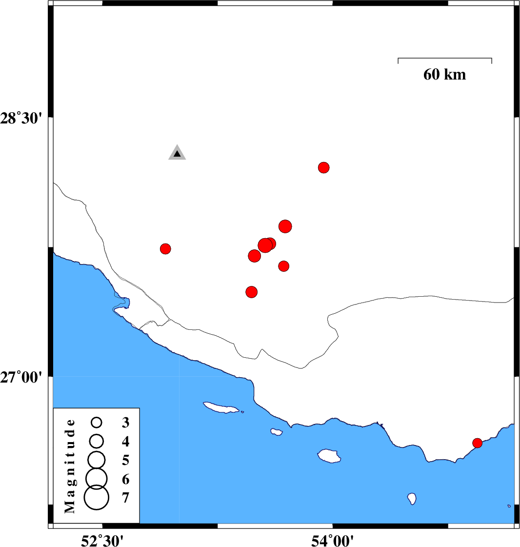 | 2008/02/09 | 06:12:06.6 | 09:42:06.6 | 28.21 | 53.94 | 44 | ML:3.3 | 49 km South-East of Jahrom, Fars Province | ||