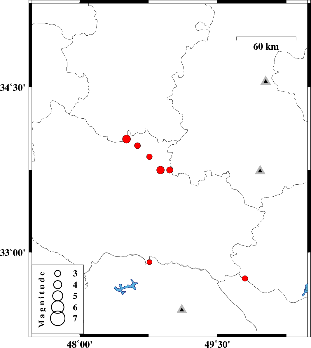 | 2008/02/02 | 11:20:31.1 | 14:50:31.1 | 34.03 | 48.51 | 17 | ML:4 | 23 km South-East of Nahavand, Hamedan Province | ||