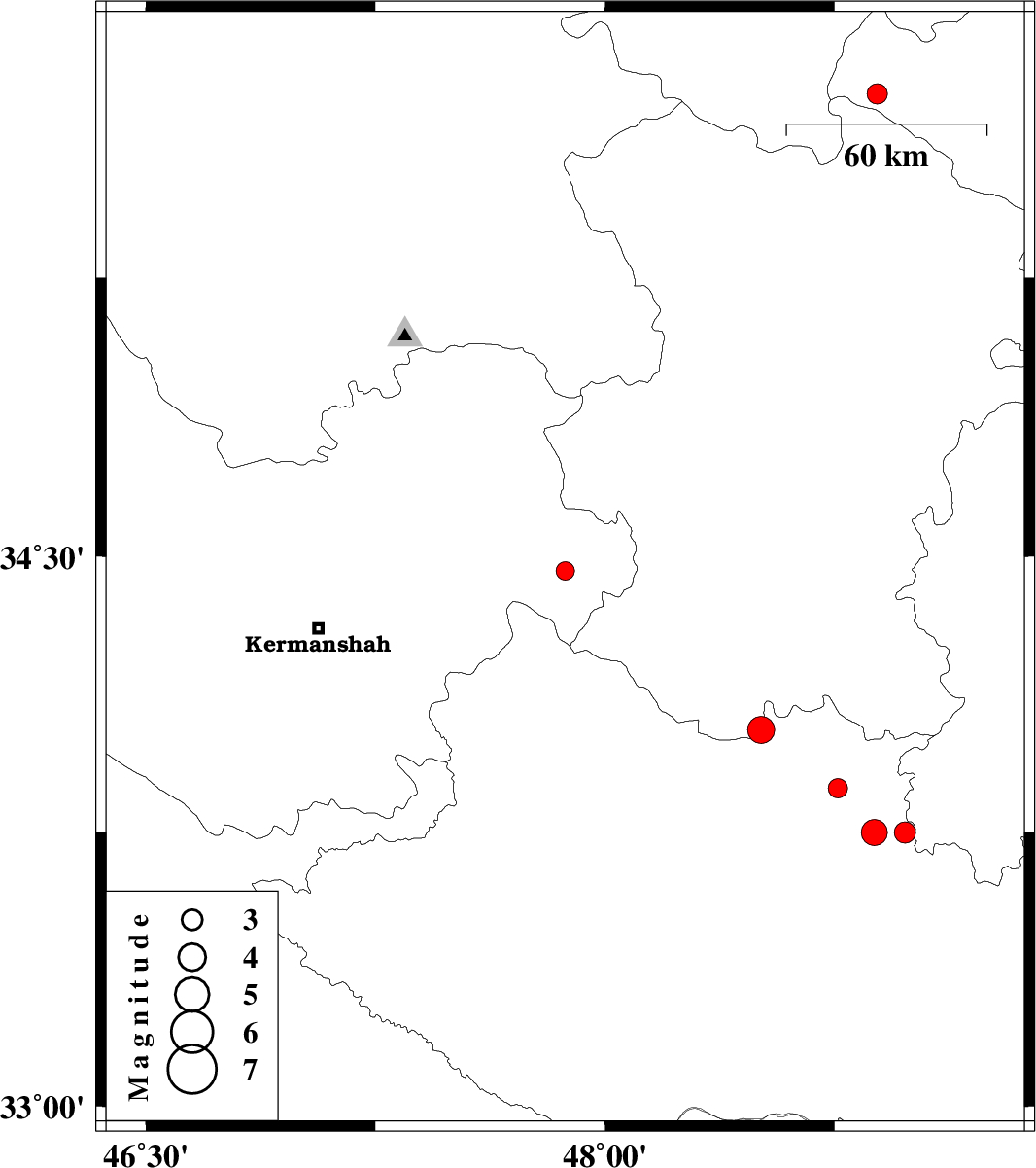 | 2008/02/22 | 04:43:00.6 | 08:13:00.6 | 34.46 | 47.87 | 15 | ML:2.7 | 7 km Kangavar, Kermanshah Province | ||