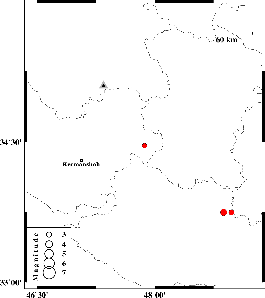 | 2008/02/22 | 04:43:00.6 | 08:13:00.6 | 34.46 | 47.87 | 15 | ML:2.7 | 7 km Kangavar, Kermanshah Province | ||