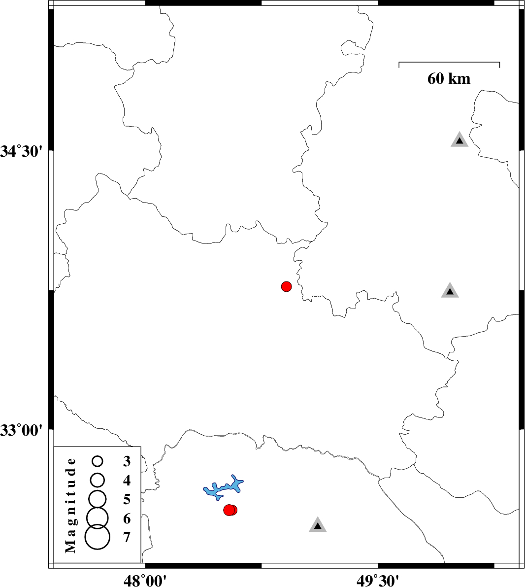 | 2008/03/04 | 19:36:29.3 | 23:06:29.3 | 33.77 | 48.91 | 18 | ML:2.9 | 19 km South-East of Borujerd, Lorestan Province | ||