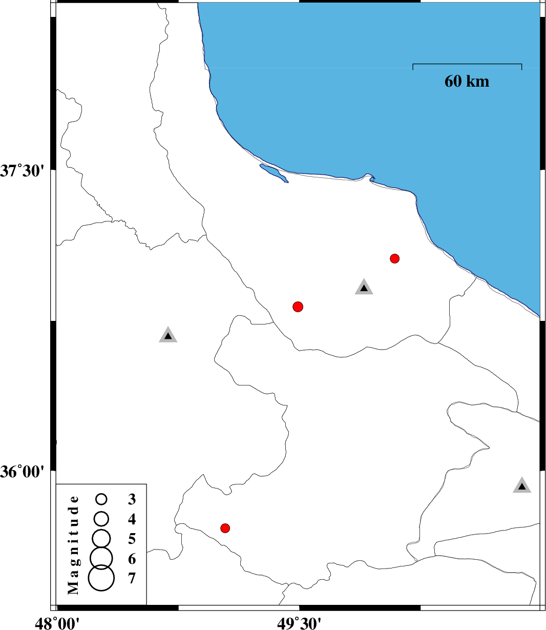 | 2008/03/06 | 03:04:05.2 | 06:34:05.2 | 36.82 | 49.49 | 14 | ML:2.8 | 5 km Rudbar, Gilan Province | ||