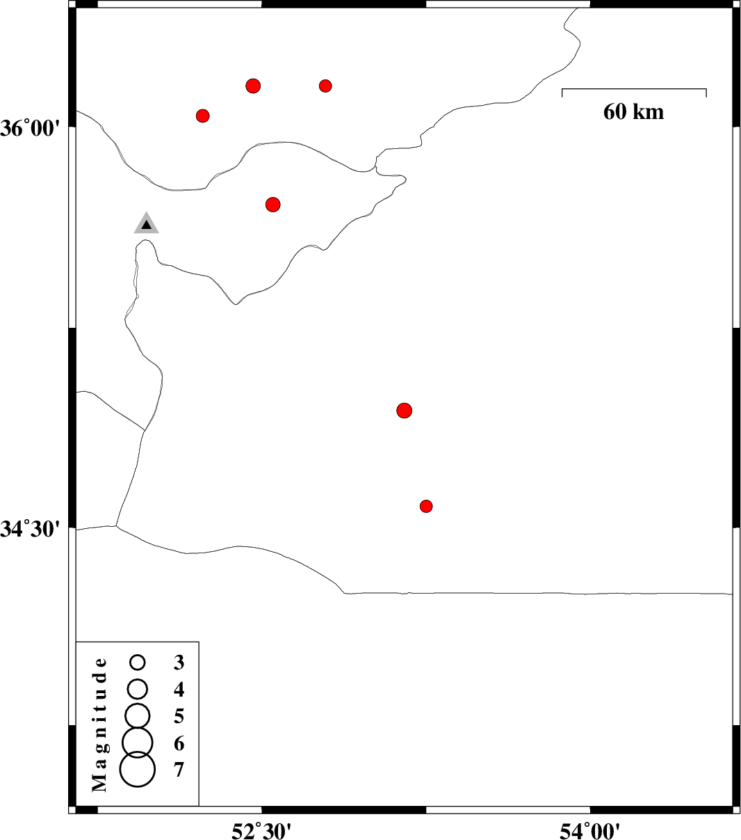 | 2008/02/10 | 15:03:55.5 | 18:33:55.5 | 36.04 | 52.23 | 15 | ML:2.7 | 38 km North-East of Damavand, Tehran Province | ||