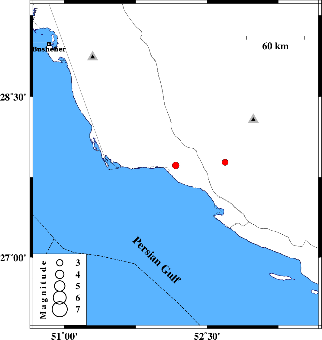 | 2008/03/07 | 20:27:00.5 | 23:57:00.5 | 27.86 | 52.17 | 19 | ML:3.2 | 11 km East of Bandar-e kangan, Bushehr Province | ||