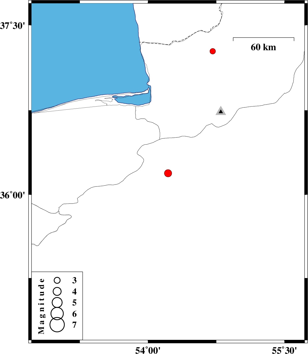 2008/03/06 20:21:54.5 23:51:54.5 37.2754.7135 ML:2.8 35 km North-East of Aq Qaleh, Golestan Province