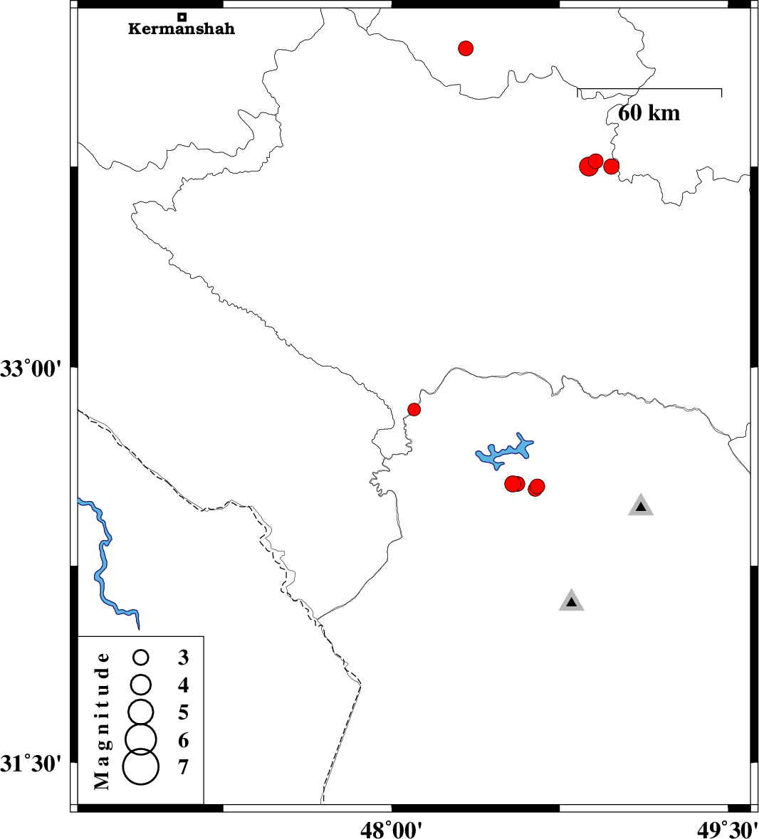 2008/03/04 | 03:31:43.7 | 07:01:43.7 | 32.56 | 48.54 | 17 | ML:3.2 | 20 km North-East of Andimeshk, Khoozestan Province | ||