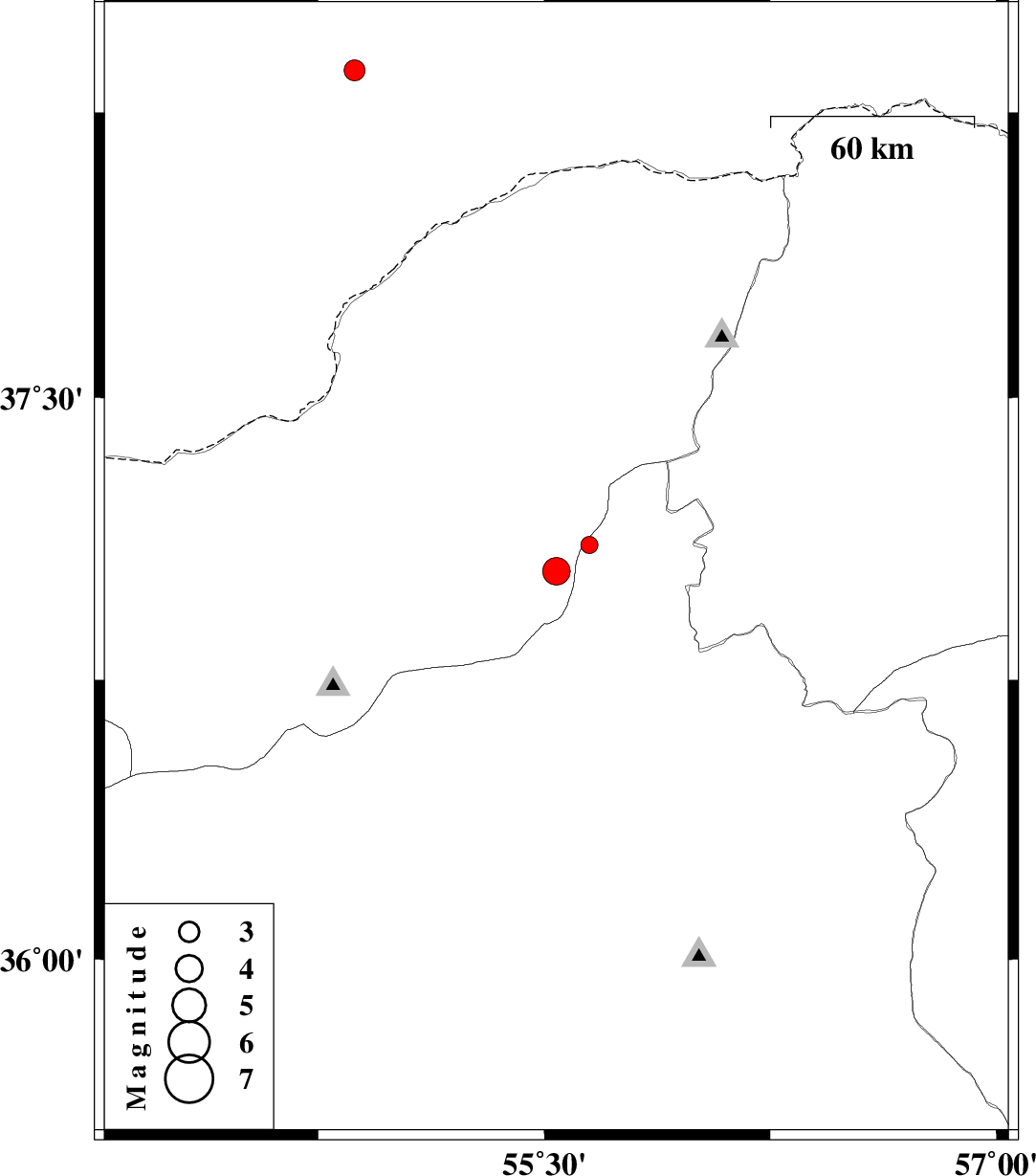 2008/03/18 03:56:47.4 07:26:47.4 37.0455.5414 ML:4.1 24 km South-East of Minodasht, Golestan Province