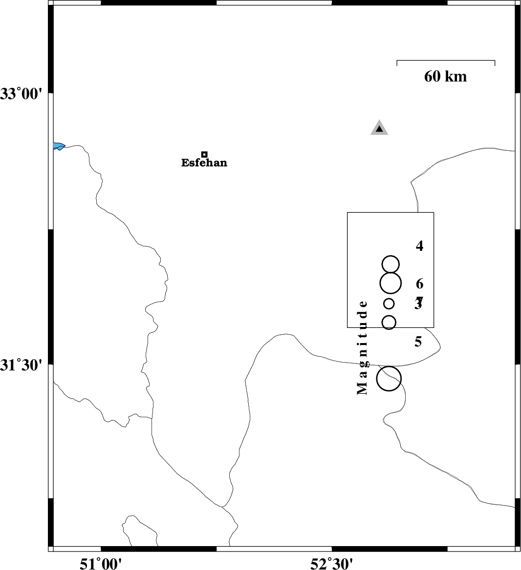 2008/03/19 | 08:15:26.1 | 11:45:26.1 | 31.98 | 52.19 | 14 | ML:4 | 30 km East of Shahreza, Esfahan Province |