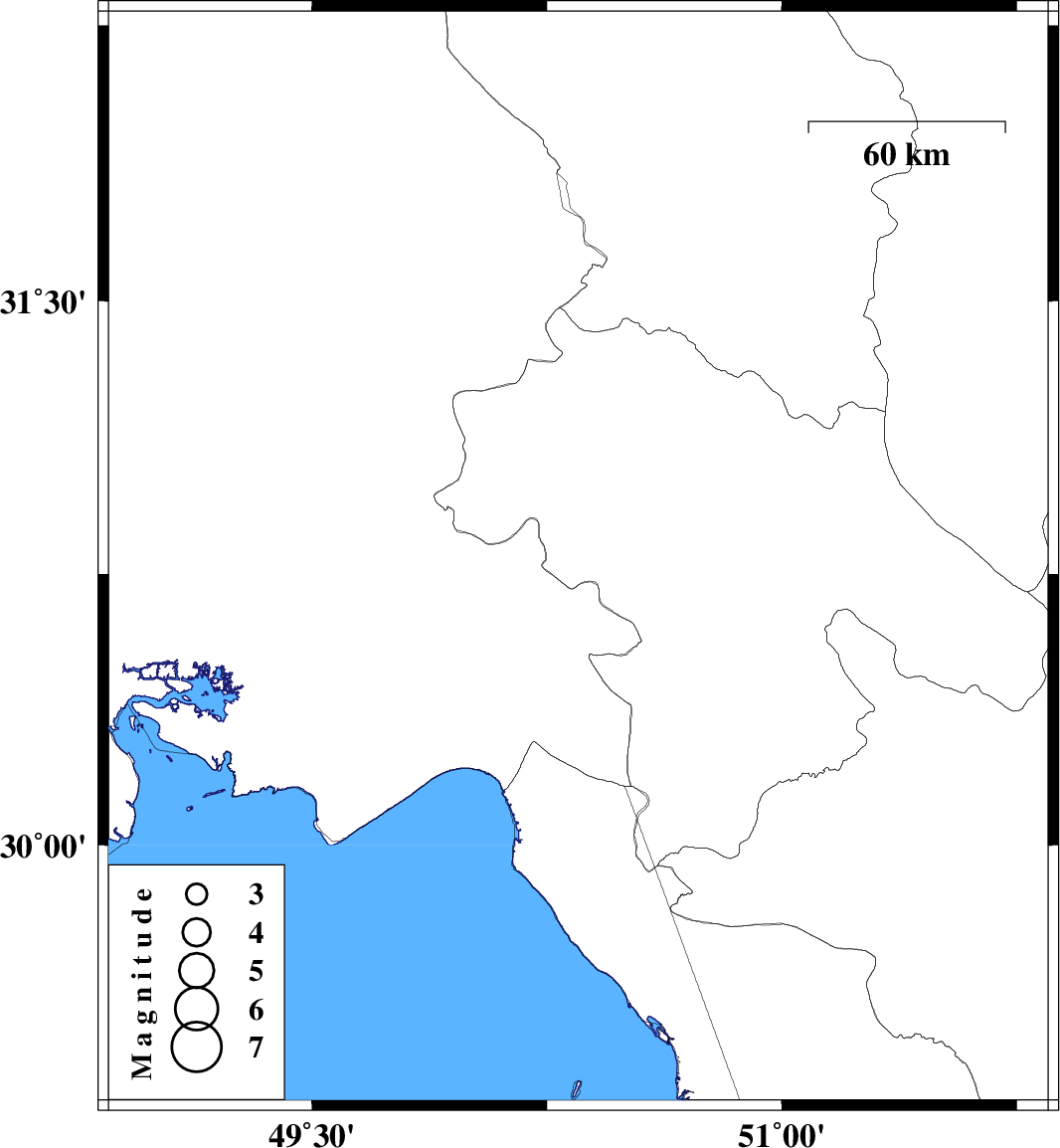 | 2008/03/20 | 21:45:39.9 | 02:15:39.9 | 30.79 | 50.35 | 15 | ML:3.4 | 20 km West of Dehdasht, Kohkiluieh va boyerahmad Province |