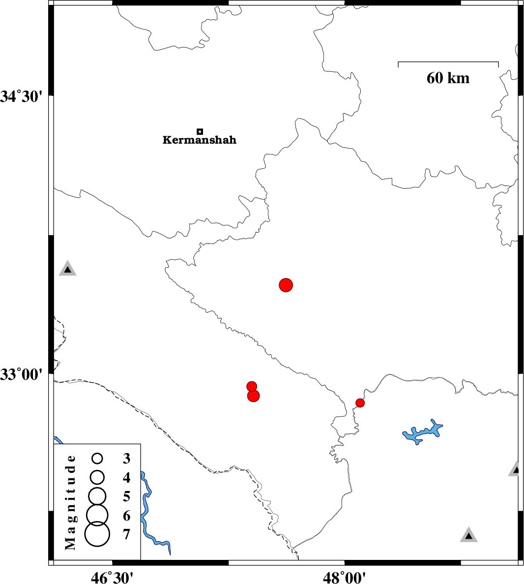 | 2008/03/17 | 22:05:36.7 | 01:35:36.7 | 32.93 | 47.4 | 18 | ML:2.9 | 6 km Abdanan, Ilam Province | ||