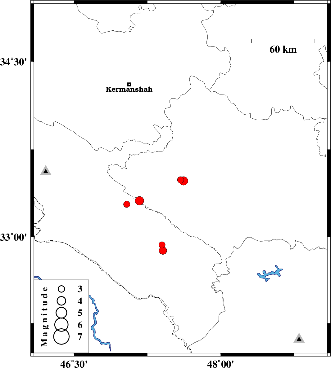 | 2008/03/17 | 22:05:36.7 | 01:35:36.7 | 32.93 | 47.4 | 18 | ML:2.9 | 6 km Abdanan, Ilam Province | ||