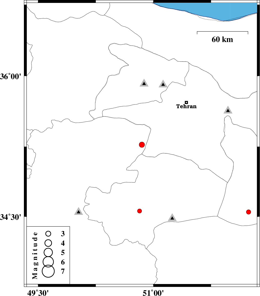 | 2008/03/25 | 09:36:35.1 | 14:06:35.1 | 35.27 | 50.85 | 11 | ML:3.2 | 31 km South-West of Robatkarim, Tehran Province | ||