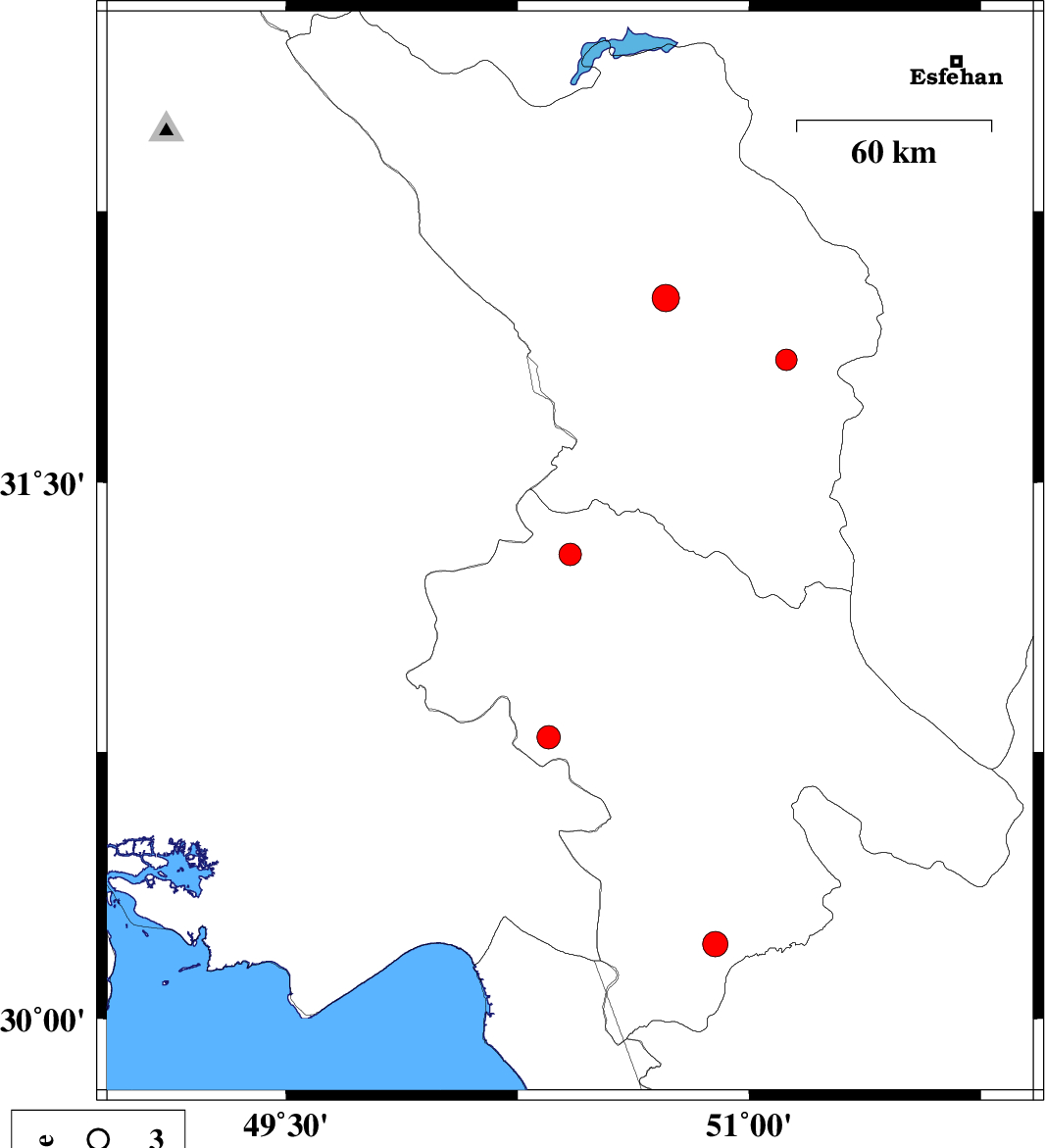 | 2008/03/27 | 01:31:23.4 | 06:01:23.4 | 31.3 | 50.42 | 15 | ML:3.2 | 43 km South-West of Lordegan, Chaharmahal Bakhtiari Province | ||