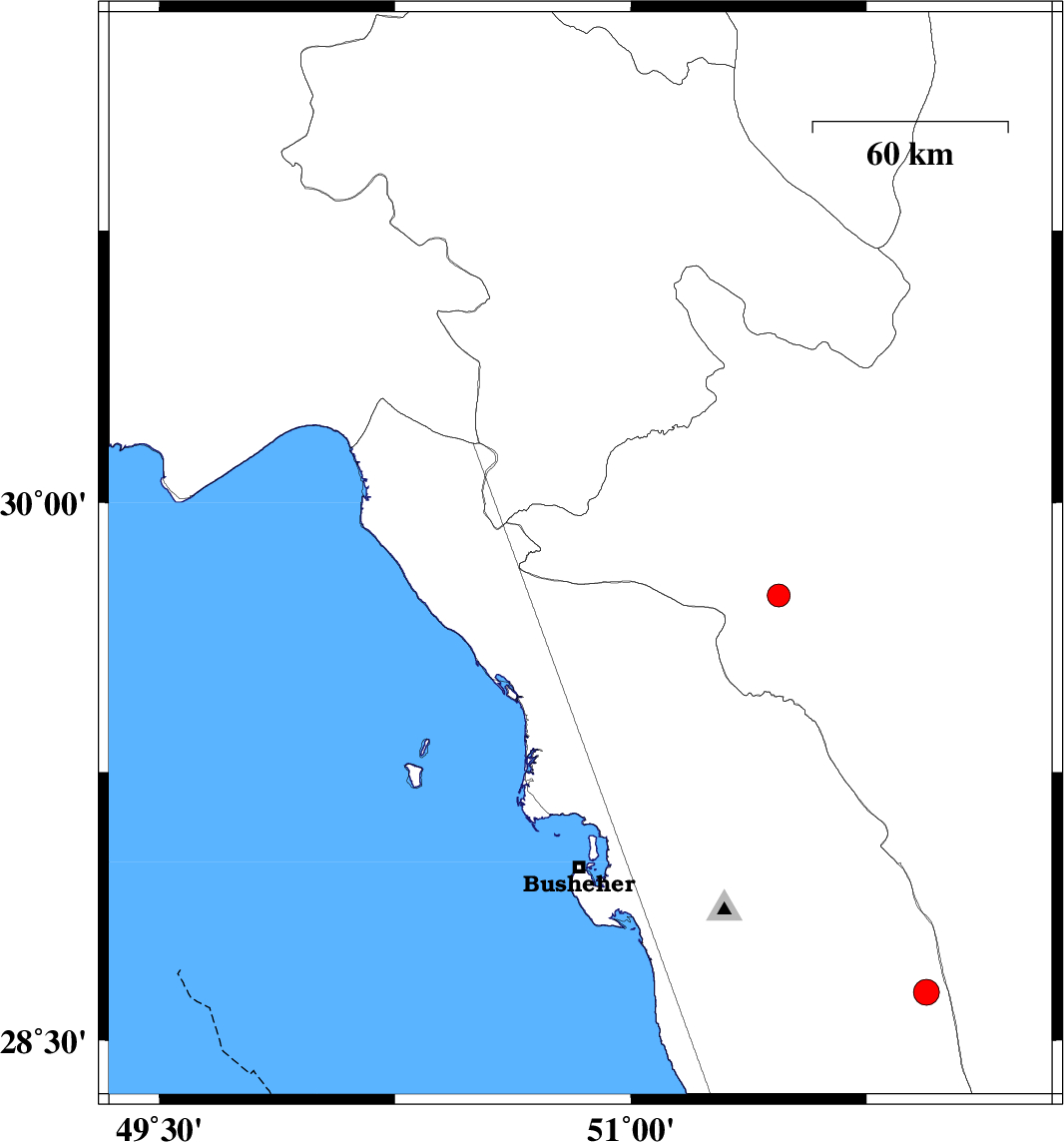 2008/03/29 17:45:33.2 22:15:33.2 29.8550.8415 ML:3.2 43 km North-East of Bandar-e genaveh, Bushehr Province