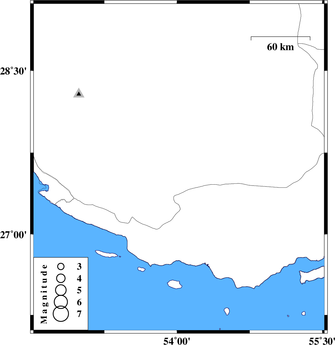 | 2008/03/31 | 11:07:32.0 | 15:37:32.0 | 27.61 | 54.02 | 15 | ML:3.3 | 32 km West of Lar, Fars Province |