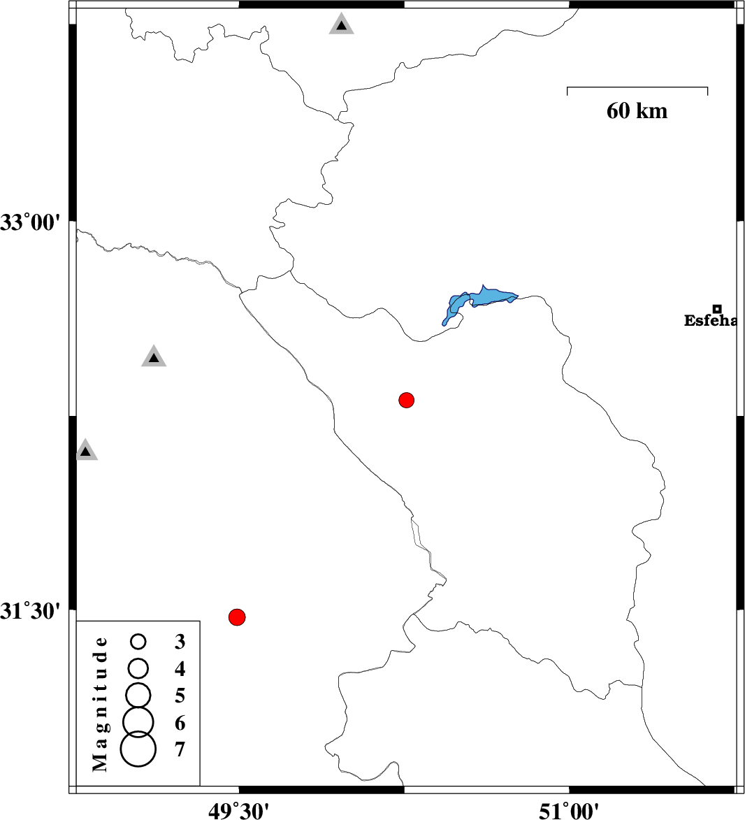 | 2008/04/02 | 10:27:30.6 | 14:57:30.6 | 31.47 | 49.49 | 36 | ML:3.4 | 24 km North-West of Ramhormoz, Khoozestan Province |