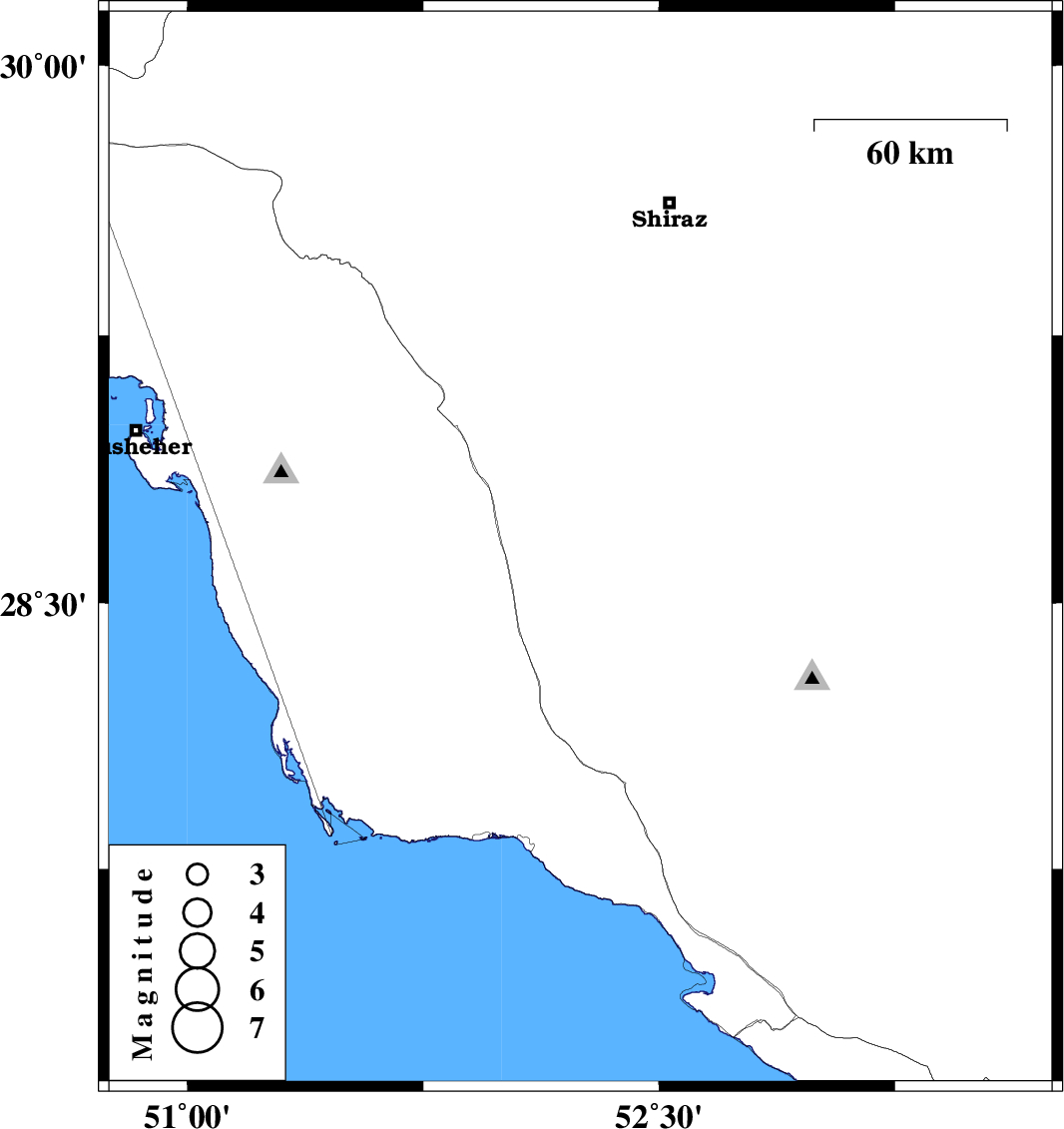 | 2008/04/06 | 21:40:55.9 | 02:10:55.9 | 28.65 | 52.25 | 32 | ML:2.9 | 29 km South-East of Farashband, Fars Province |
