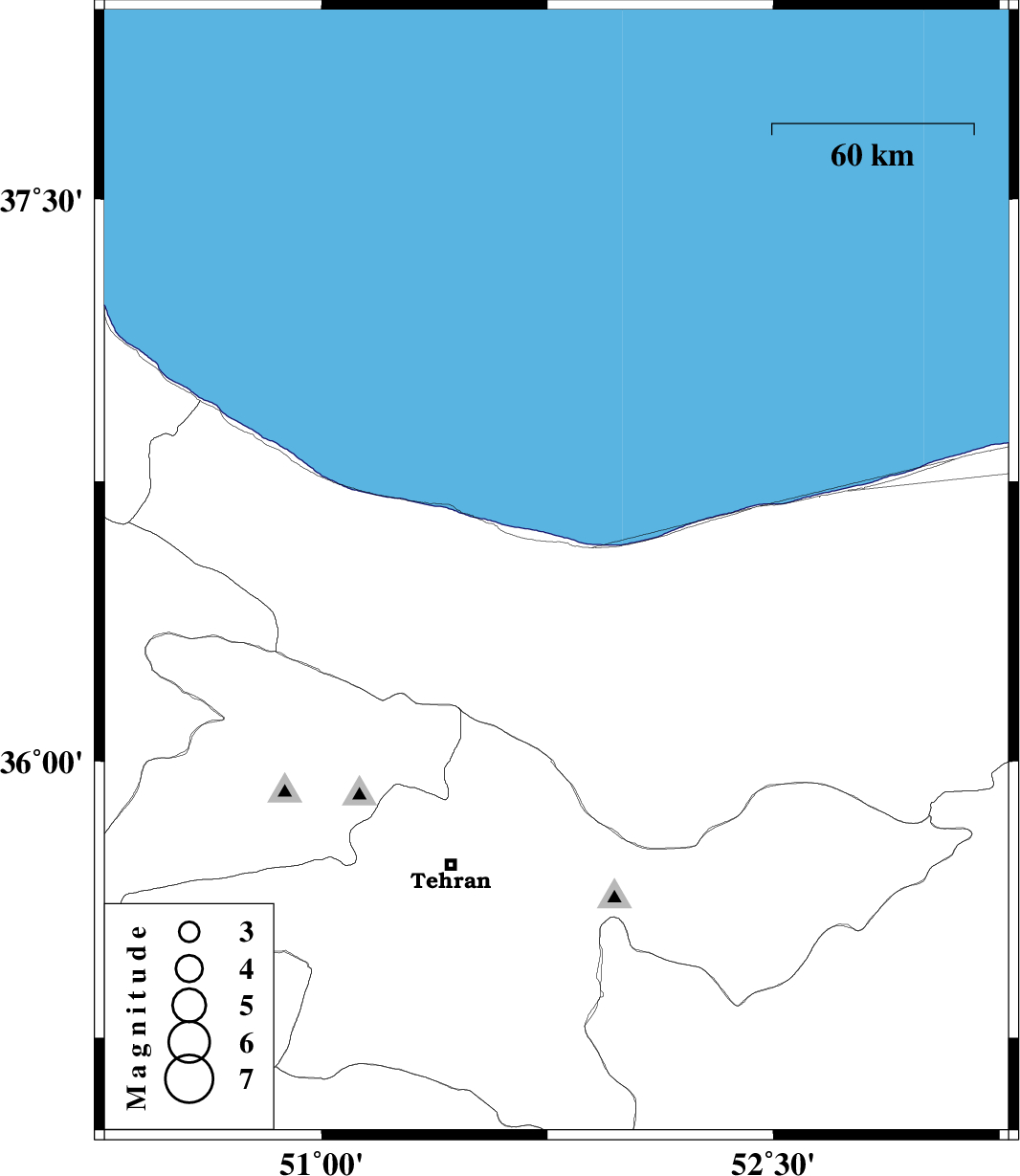 | 2008/04/07 | 18:13:54.6 | 22:43:54.6 | 36.5 | 51.78 | 6 | ML:2.7 | 24 km West of Nur, Mazandaran Province |