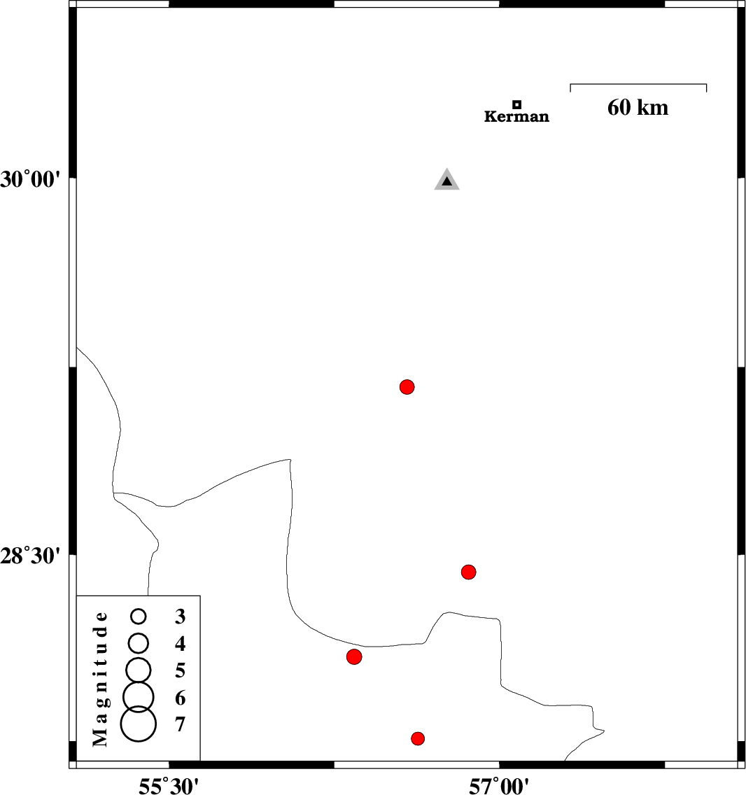 | 2008/04/06 | 18:42:54.2 | 23:12:54.2 | 27.76 | 56.63 | 14 | ML:2.7 | 70 km North-West of Dehbarez, Hormozgan Province |