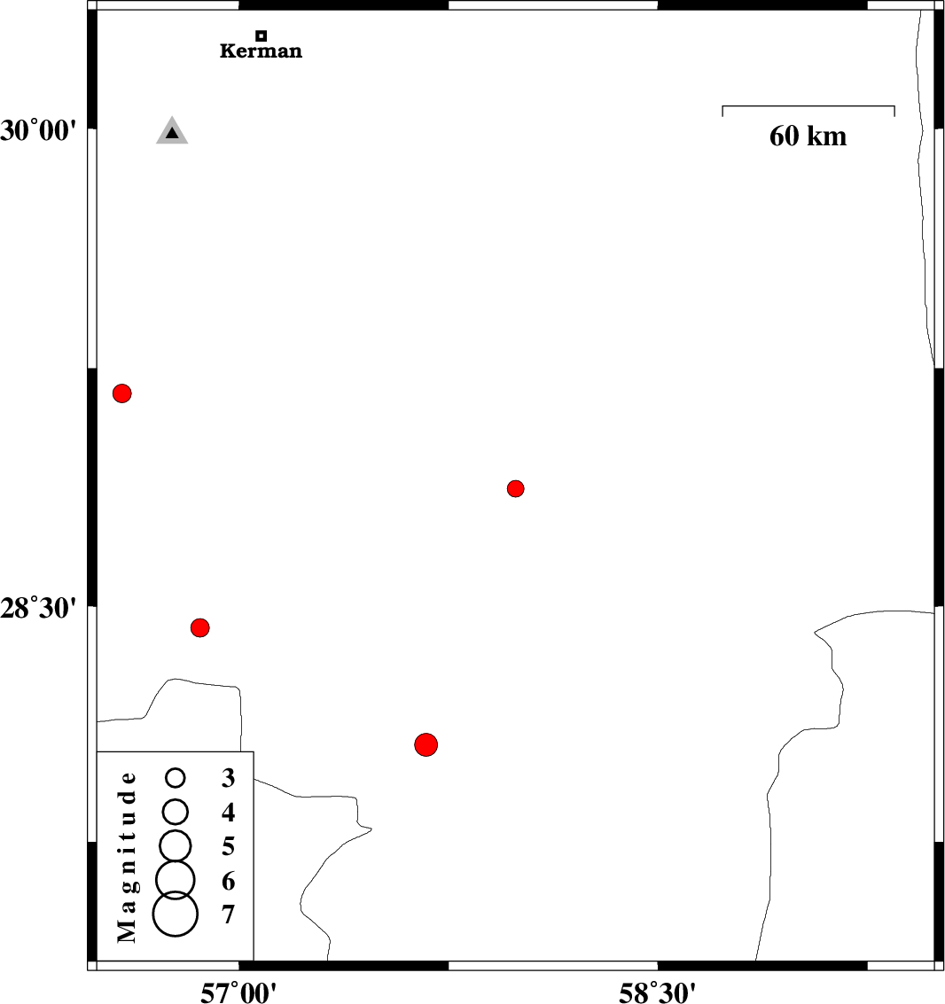 | 2008/04/13 | 12:40:05.0 | 17:10:05.0 | 28.06 | 57.67 | 14 | ML:3.7 | 12 km North of Kahnuj, Kerman Province | ||