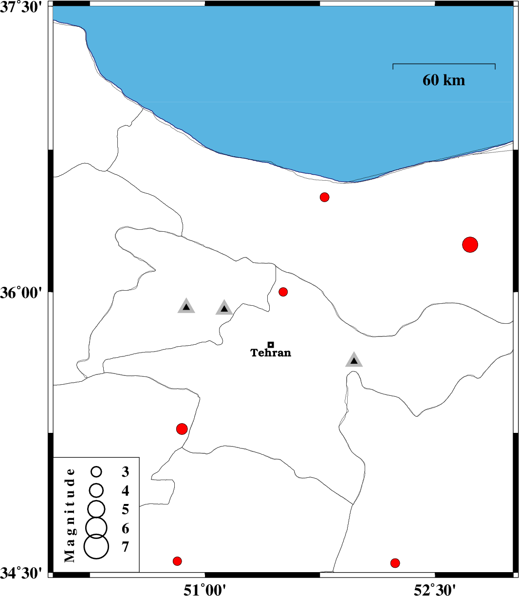 | 2008/03/25 | 09:36:35.1 | 14:06:35.1 | 35.27 | 50.85 | 11 | ML:3.2 | 31 km South-West of Robatkarim, Tehran Province | ||