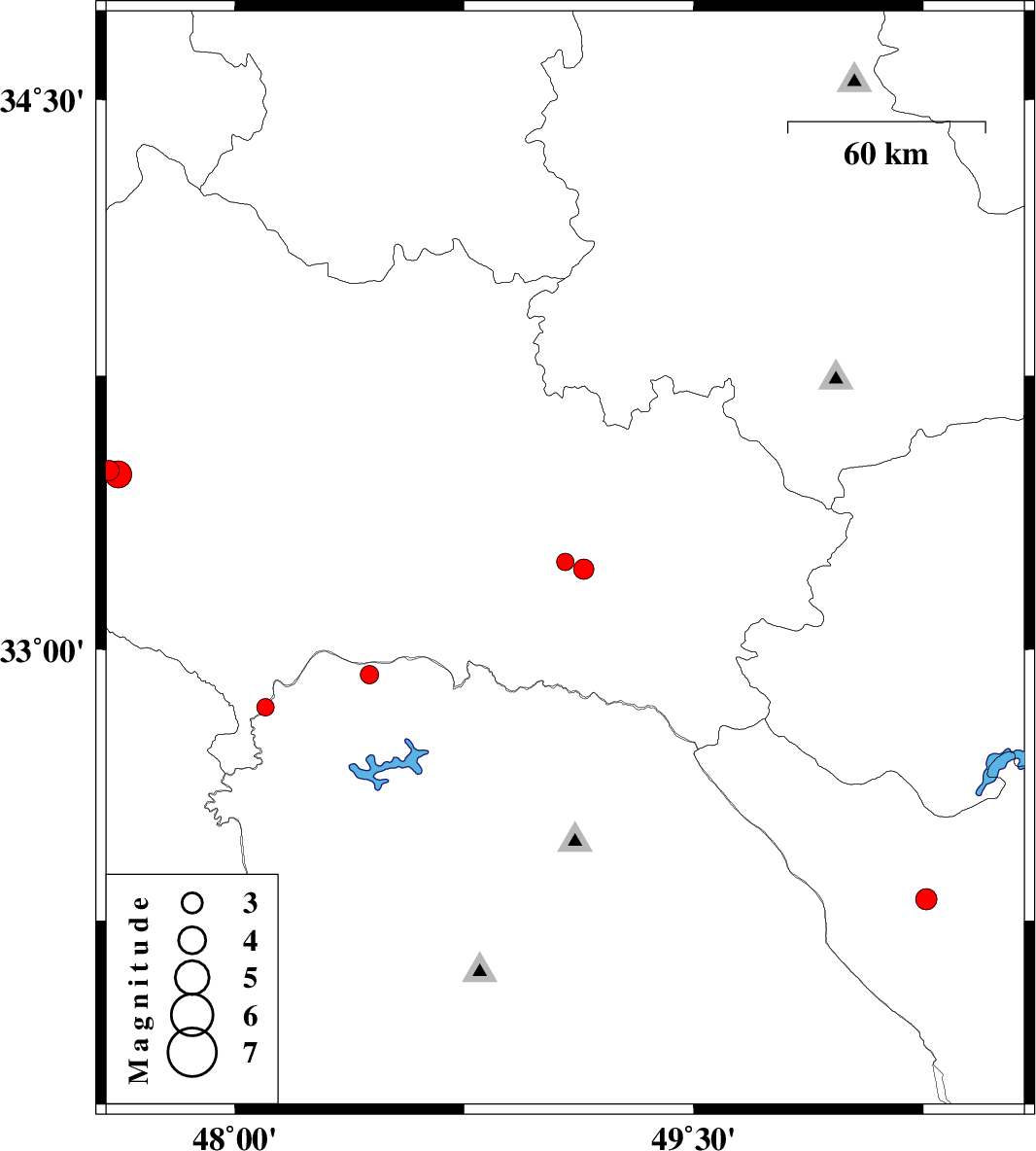 | 2008/03/15 | 03:15:17.1 | 06:45:17.1 | 32.84 | 48.1 | 38 | ML:2.6 | 48 km North-West of Andimeshk, Khoozestan Province |