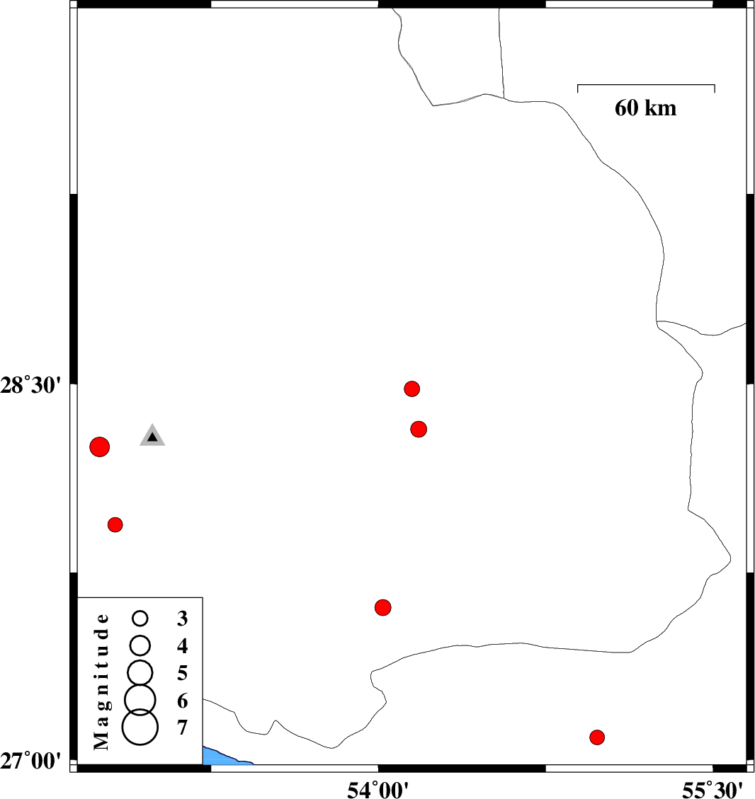 | 2008/03/31 | 11:07:32.0 | 15:37:32.0 | 27.61 | 54.02 | 15 | ML:3.3 | 32 km West of Lar, Fars Province |
