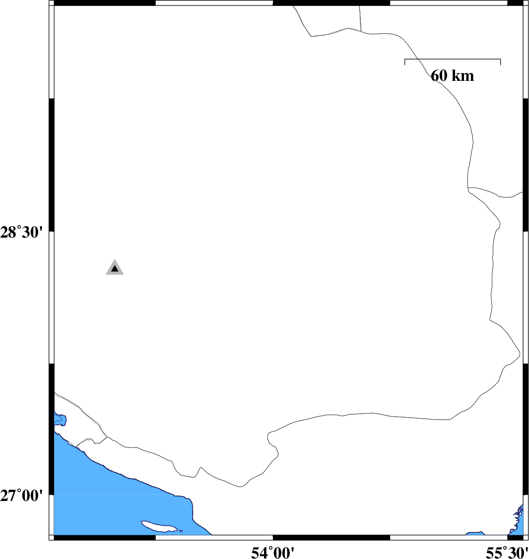 2008/04/29 06:10:43.8 10:40:43.8 28.3454.0641 ML:2.9 52 km South-East of Jahrom, Fars Province