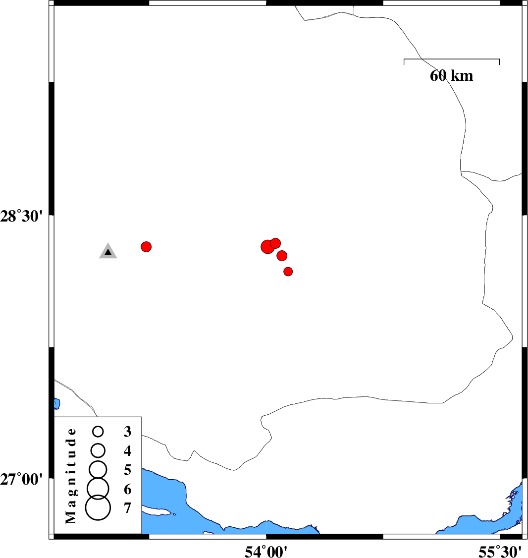 2008/04/29 06:10:43.8 10:40:43.8 28.3454.0641 ML:2.9 52 km South-East of Jahrom, Fars Province