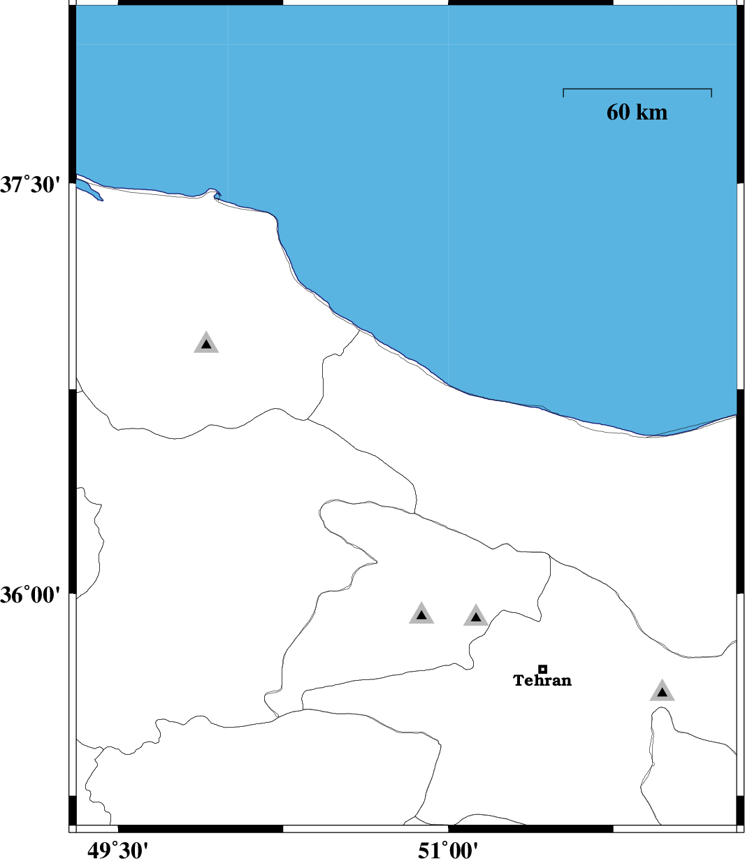| 2008/04/14 | 06:45:34.6 | 11:15:34.6 | 36 | 51.51 | 0 | ML:2.5 | 22 km North of Tajrish, Tehran Province | ||
