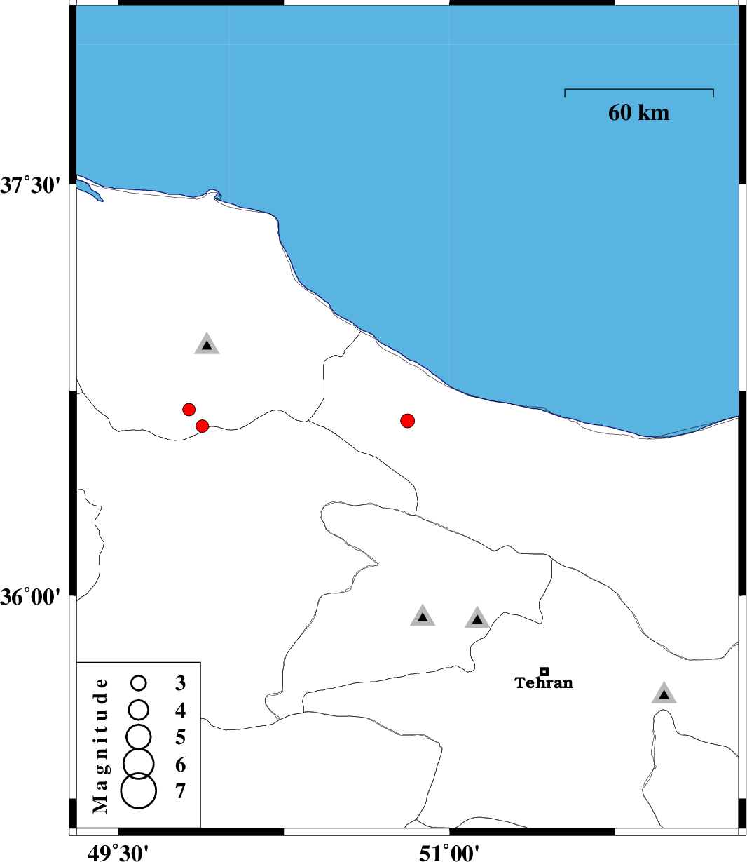 | 2008/04/30 | 01:29:08.6 | 05:59:08.6 | 36.64 | 50.81 | 14 | ML:2.8 | 20 km South of Tonekabon, Mazandaran Province | ||