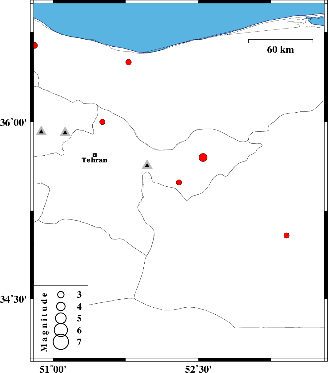 | 2008/04/14 | 06:45:34.6 | 11:15:34.6 | 36 | 51.51 | 0 | ML:2.5 | 22 km North of Tajrish, Tehran Province | ||