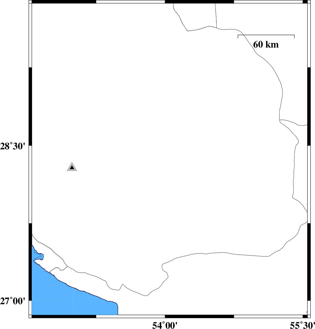 2008/04/29 | 06:10:43.8 | 10:40:43.8 | 28.34 | 54.06 | 41 | ML:2.9 | 52 km South-East of Jahrom, Fars Province | ||