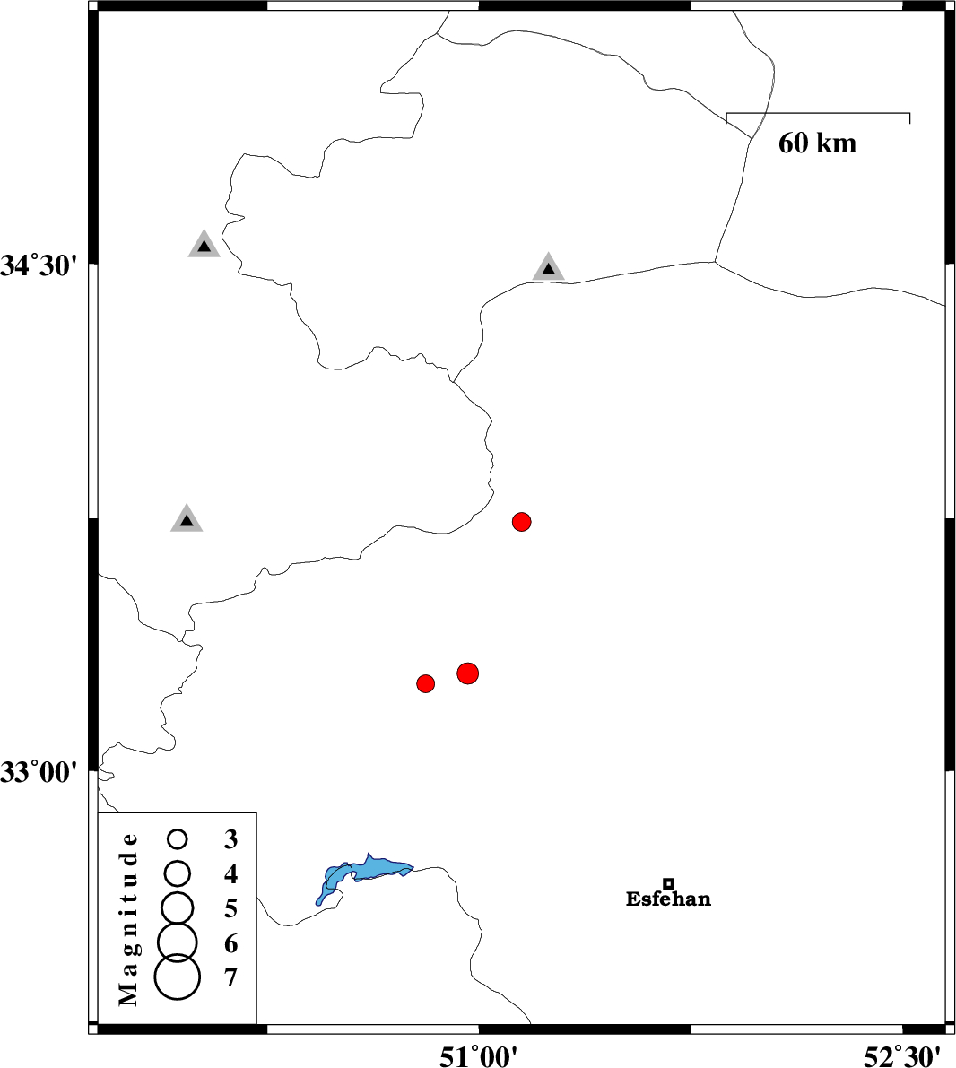 | 2008/04/21 | 01:52:12.4 | 06:22:12.4 | 33.29 | 50.96 | 14 | ML:3.4 | 60 km East of Khvansar, Esfahan Province |