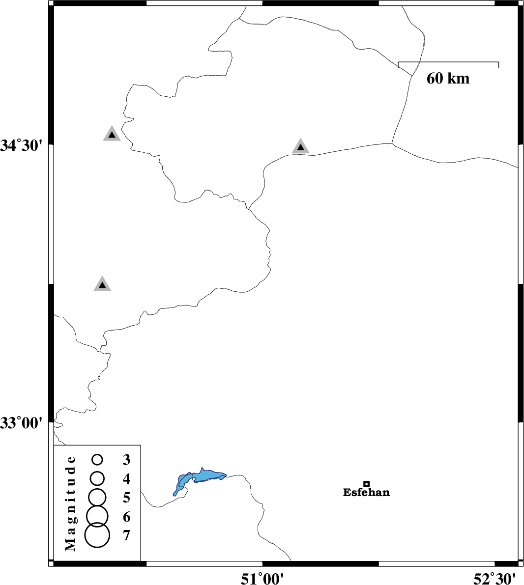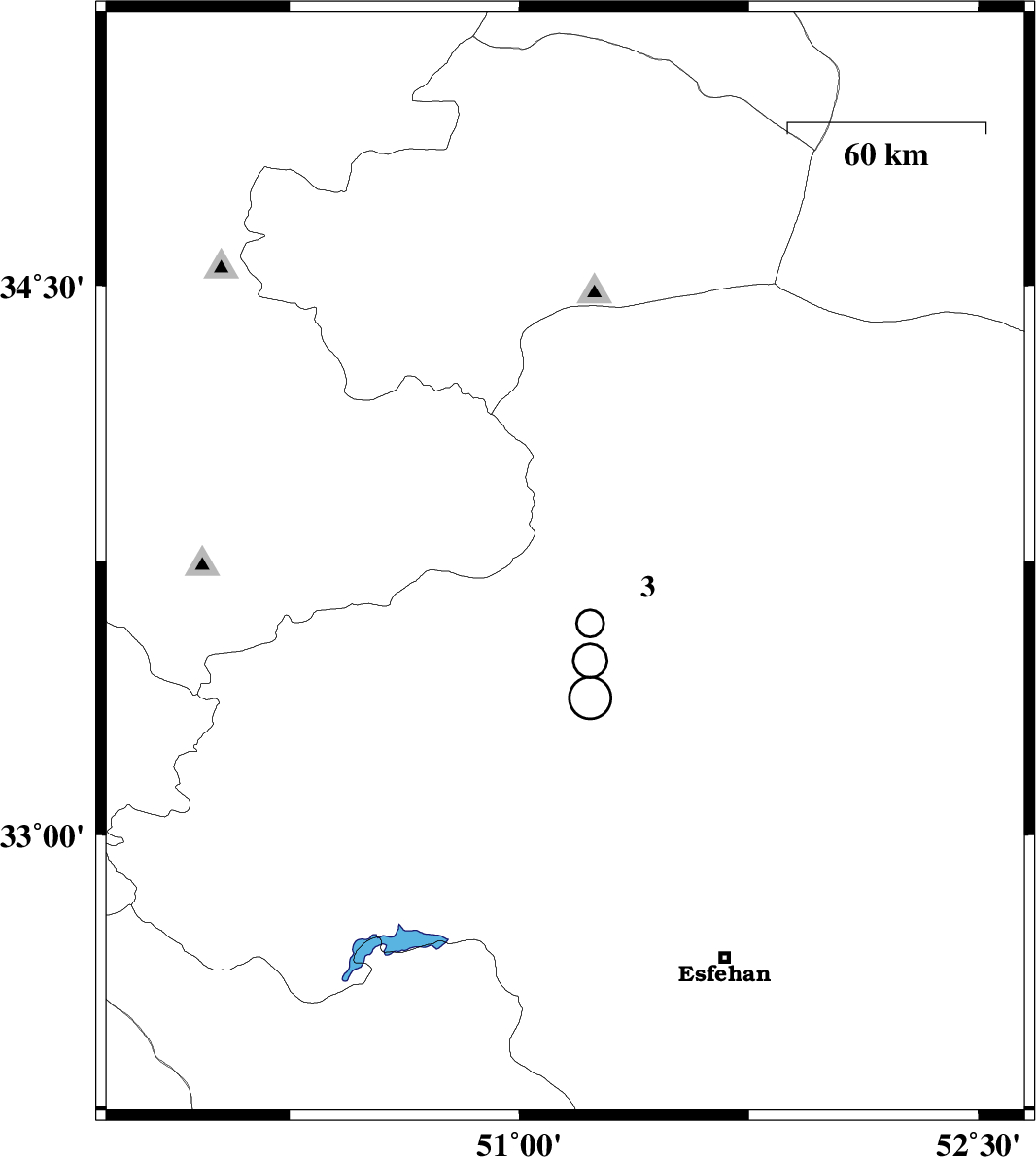| 2008/05/07 | 09:16:58.0 | 13:46:58.0 | 33.74 | 51.15 | 26 | ML:2.9 | 38 km South-West of Kashan, Esfahan Province |