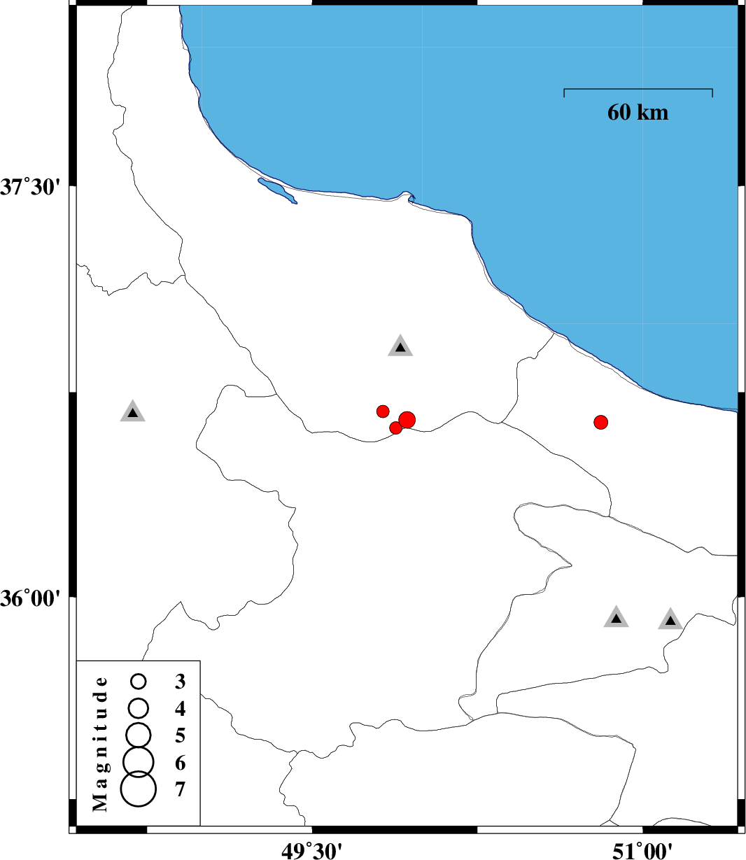 | 2008/04/28 | 00:59:41.1 | 05:29:41.1 | 36.62 | 49.88 | 16 | ML:2.6 | 40 km North-West of Qazvin, Ghazvin Province | ||