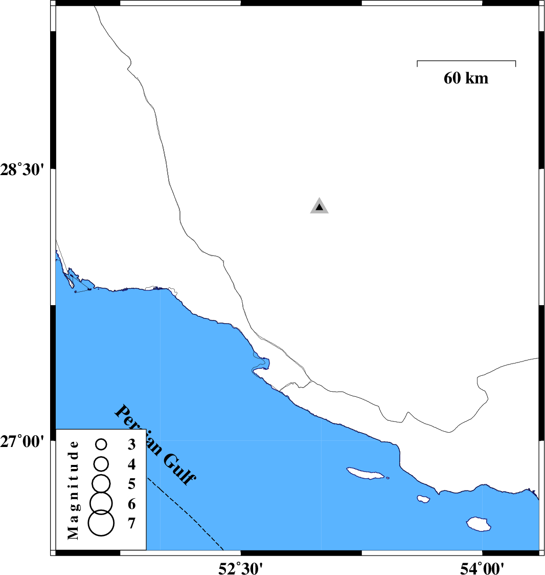 | 2008/05/22 | 20:55:58.9 | 01:25:58.9 | 27.89 | 52.85 | 12 | ML:3 | 38 km North of Mehr, Fars Province |