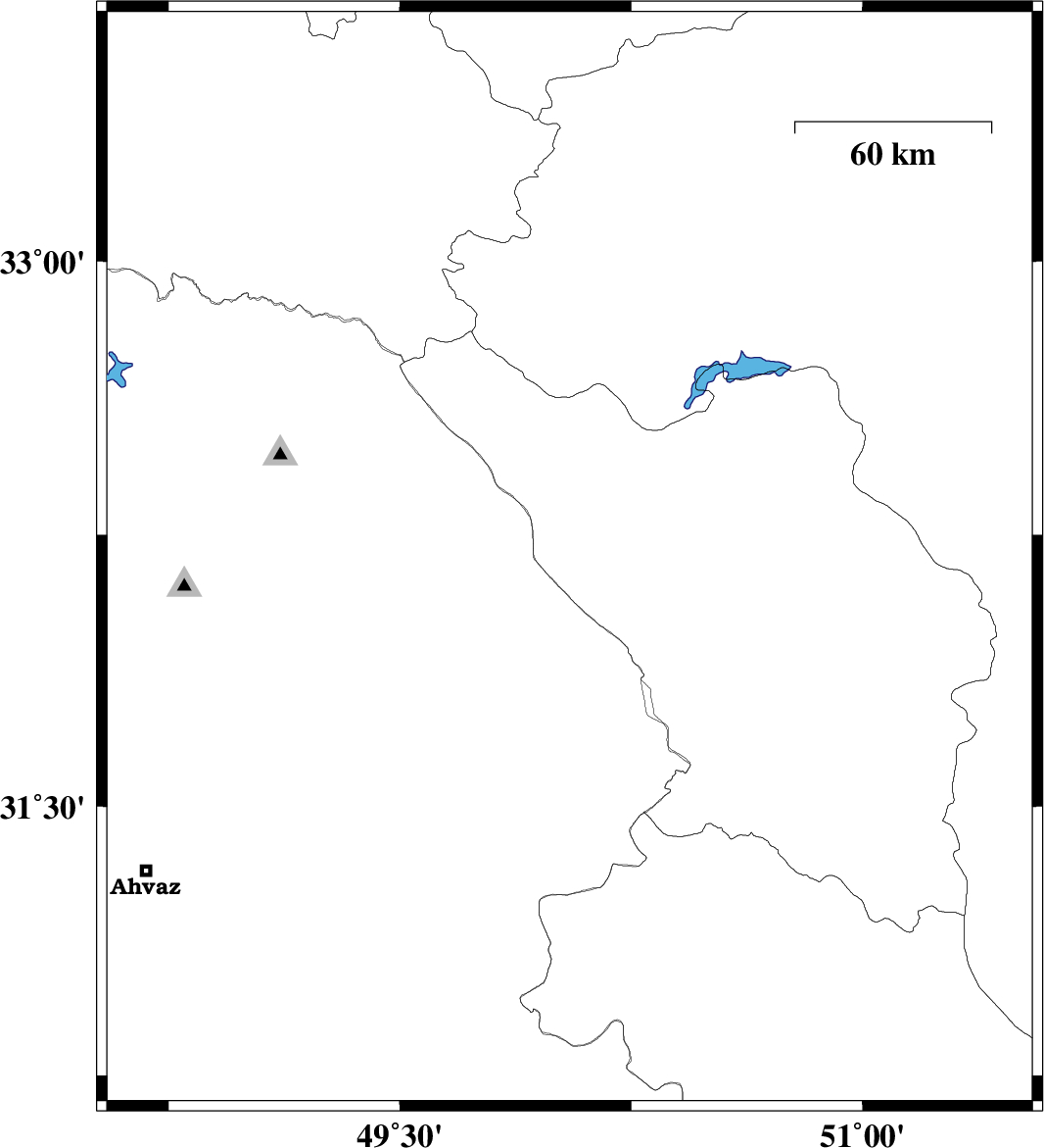 2008/05/26 | 15:10:41.3 | 19:40:41.3 | 31.63 | 50.28 | 14 | ML:3 | 38 km North-East of Bagh Malek, Khoozestan Province | ||