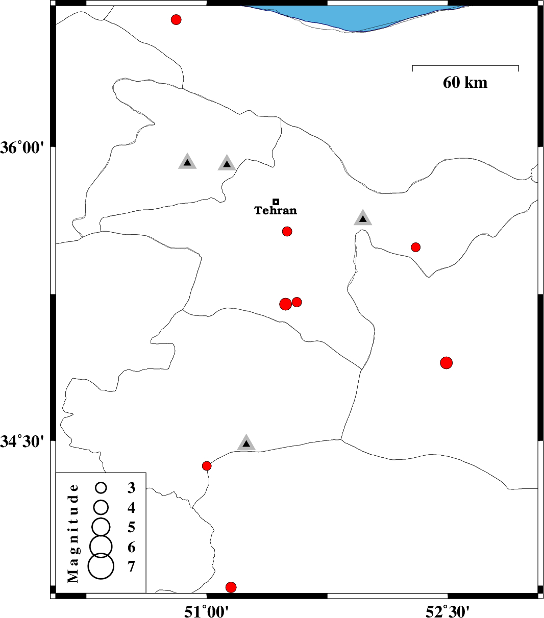 | 2008/04/30 | 01:29:08.6 | 05:59:08.6 | 36.64 | 50.81 | 14 | ML:2.8 | 20 km South of Tonekabon, Mazandaran Province |
