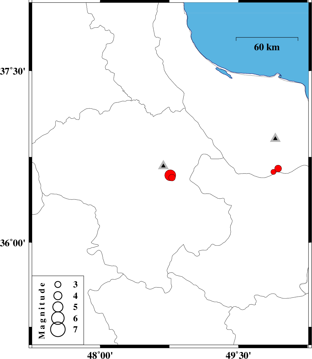 | 2008/05/27 | 06:18:04.1 | 10:48:04.1 | 36.59 | 48.76 | 14 | ML:5.4 | 26 km East of Zanjan, Zanjan Province | ||