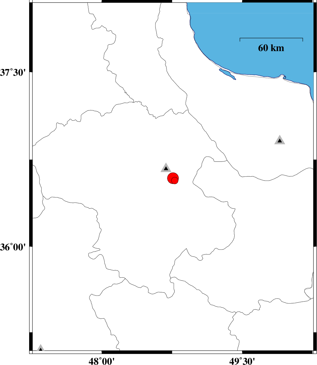 | 2008/05/27 | 23:56:51.2 | 04:26:51.2 | 36.57 | 48.78 | 18 | ML:3.2 | 28 km South-East of Zanjan, Zanjan Province | ||