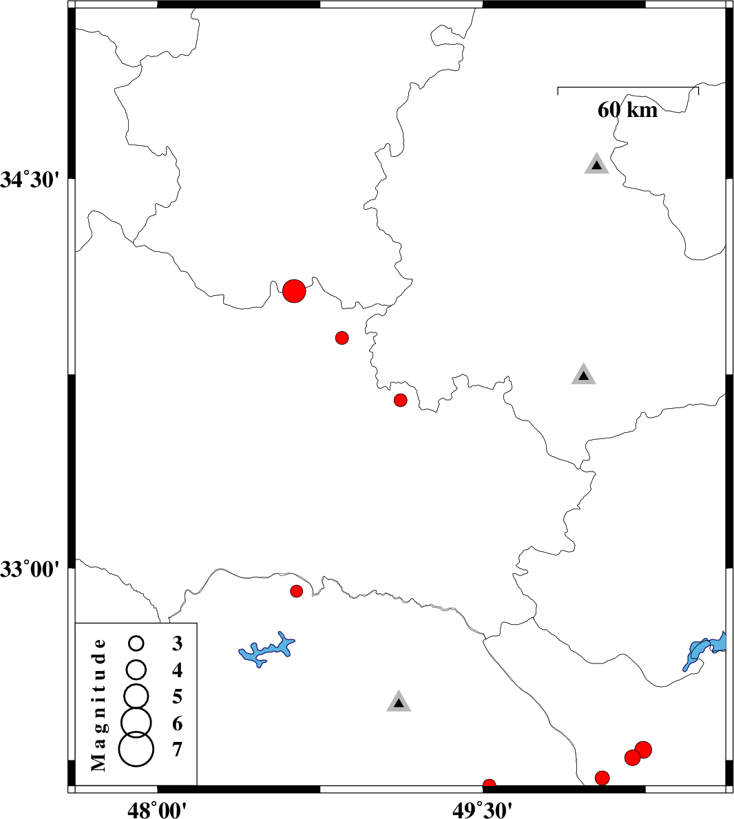 | 2008/05/01 | 00:15:24.6 | 04:45:24.6 | 34.07 | 48.63 | 15 | ML:4.8 | 22 km North-West of Borujerd, Lorestan Province |