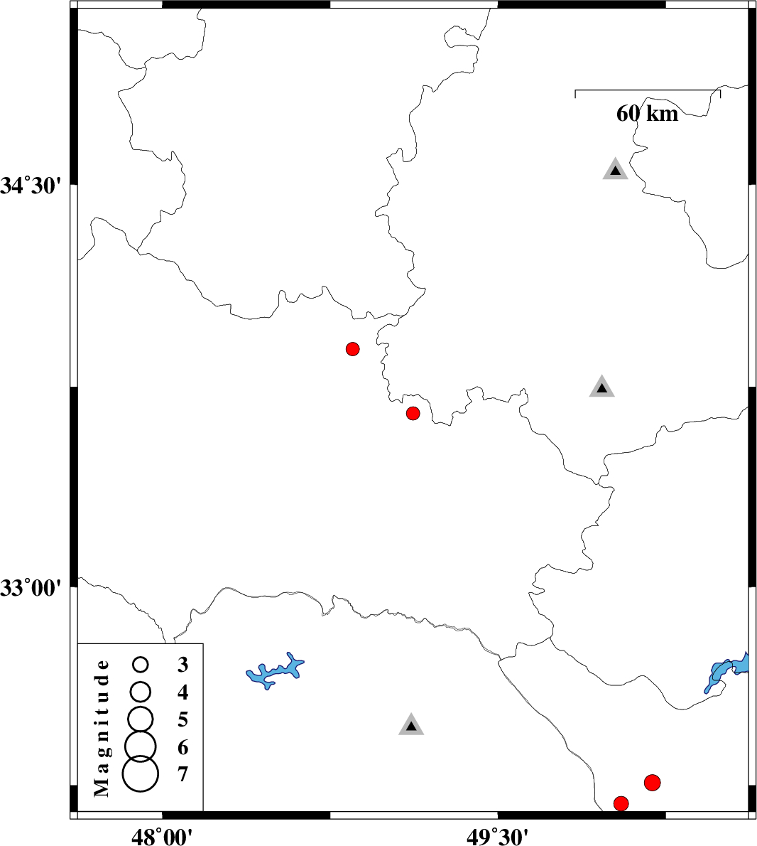 | 2008/05/21 | 20:15:40.1 | 00:45:40.1 | 33.89 | 48.85 | 15 | ML:2.7 | 8 km Borujerd, Lorestan Province |