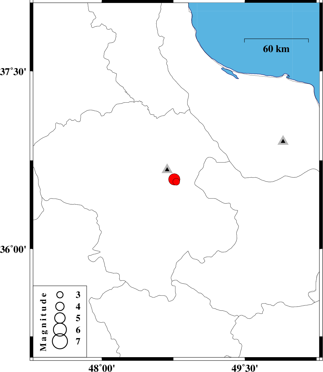 | 2008/05/27 | 06:18:04.1 | 10:48:04.1 | 36.59 | 48.76 | 14 | ML:5.4 | 26 km East of Zanjan, Zanjan Province |