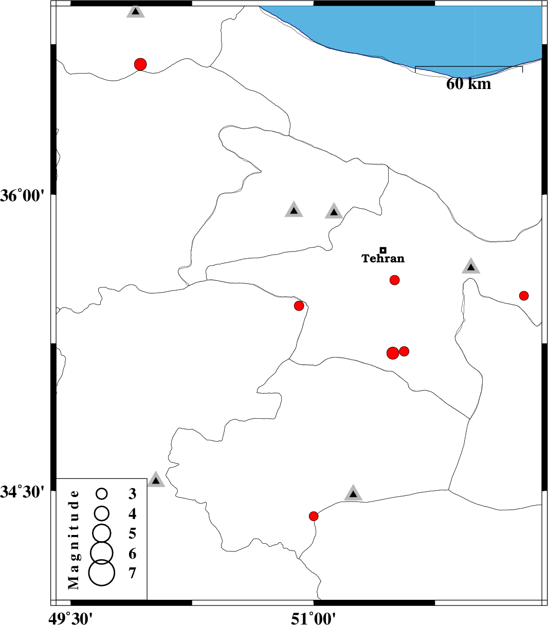 | 2008/05/31 | 04:42:19.3 | 09:12:19.3 | 35.44 | 50.91 | 46 | ML:2.7 | 16 km West of Robatkarim, Tehran Province | ||