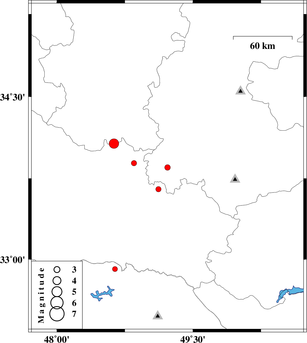 | 2008/05/01 | 00:15:24.6 | 04:45:24.6 | 34.07 | 48.63 | 15 | ML:4.8 | 22 km North-West of Borujerd, Lorestan Province |